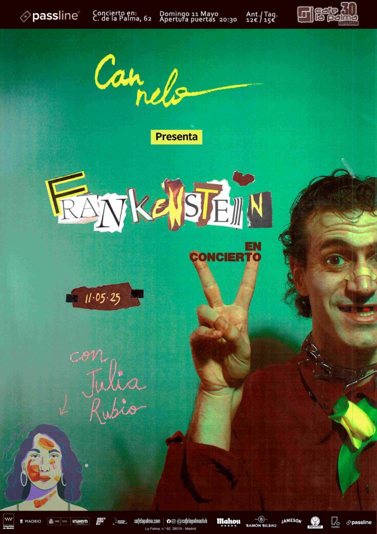 CANNELO presenta su primer disco “Frankenstein”: un collage de estilos musicales desde el indie electrónico, al rap, la balada o el folclore. Con letras que aluden a la sabiduría tradicional y al impulso sinvergüenza de lo nuevo. Cannelo contará con una banda con bajo (Roberto Cuchillo), guitarra (Alfonso Biloba) y batería (Dani Herrero), con la colaboración de un coro, y la performance de varios actores y actrices.