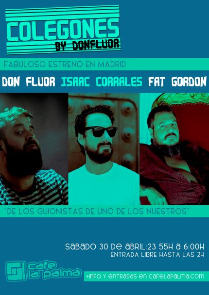 El combo de agitadores nocturnos formado por el Dj y productor DON FLUOR y el guionista e influencer ISAAC CORRALES vuelve a tomar la cabina de 21 years of history, and Café la Palma is one of the most dynamic music venues in Madrid, and a pioneer in the introduction of «first drink» concept. We are placed in Madrid’s downtown. Our philosophy is escape from any conventionalism, getting from Café la Palma a multi-dimensional place, a labyrinth full of amazing novelties. Café la Palma is for sure the best place for leisure and culture, to find all kind of surprises, in a constant process of change, adaptable to your mood. Only decide where to sit, and have some joy. You can sit and have a chat with your friends, with some cups of delicious coffee; enjoy evocative oriental beats an irresistible cocktails in the arab tent; or join into a concert with amazing Madrid’s underground bands, or well known pop musicians; or going mad with our dance floor, with best Madrid DJs. We provide a complete variety of services of entertaiment. And our staff is kind, efficient and professional. The dance floor, and concerts hall is for sure the core of Café la Palma. We proudly feel like a meeting point for curious, dynamic people. Like our customers, we are sophisticated and opened. All «tribes», all generations are welcome to feed and feel the magic of Café la Palma. About live music, our sound is one of the best in Madrid. In our scenario have played Dominique A, Jay Jay Johanson, Amaral, Addictive TV, Kenny Larkin, Ursula 1000, Programme, Mani (Primal Scream), The Gift, Amparanoia, Mala Rodríguez, Cycle, Josele Santiago, The Exception, The Coronas, Sex Museum, Vetusta Morla, Chojín Laziness Izal, Alamedadosoulna, La Bien Querida o Lichis and Goat Mechanics. para ofrecer a los paladares más exquisitos una sesión electrónica de altos vuelos. Para la ocasión estarán acompañados, además, del Dj y promotor FAT GORDON.