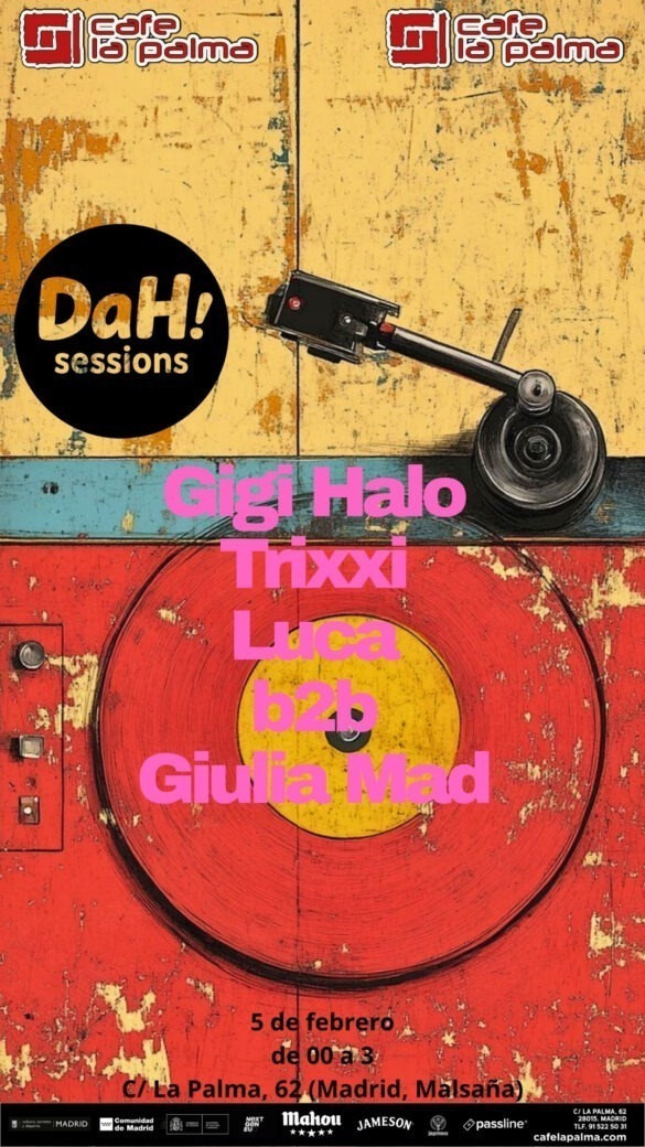 Giulia Mad :DJ madrileña con estilo definido dentro de la electrónica de club, sus sesiones fusionan el género House en todas sus variantes. Su enfoque es tanto técnico como narrativo, construye sus sets con una línea concreta y al mismo tiempo adaptable a la energía de la sala del momento, su trayectoria se podría definir como versátil y creativa. Creadora y promotora del evento “DaH! sessions” actualmente en activo en la escena clubbing de Madrid.