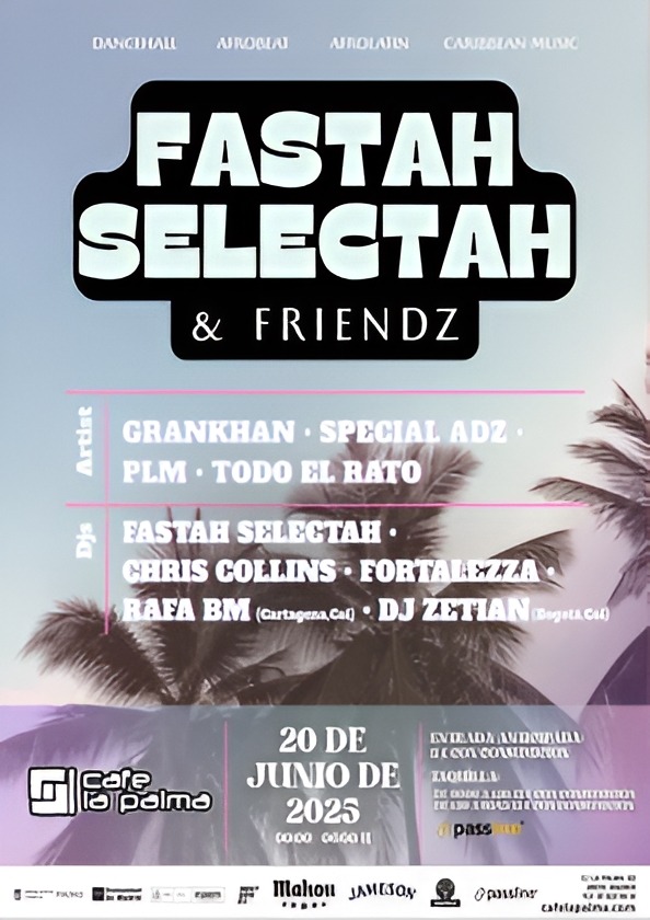 FASTAH SELECTAH & FRIENDZ es una fiesta donde se fusionan sabores musicales que mezclan lo mejor de la música caribeña con lo mejor de la música africana. Aquí se darán cita, además del anfitrión, los siguientes artistas en formato showcase: