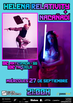 HELENA RELATIVITY es una artista multidisciplinar que nació en… un momento, ¿de dónde es? Cuentan por ahí que ni siquiera es de este planeta. Después de navegar por muchos estilos diferentes, se ha sumergido por completo en un concepto propio en el que fusiona géneros como el rock o el blues, con sonidos tribales y un poco alienígenas, todos ellos bajo el influjo de la música electrónica. Crea ambientes divertidos y fiesteros a la par que misteriosos que, sin lugar a dudas, te harán despertar de la matrix.