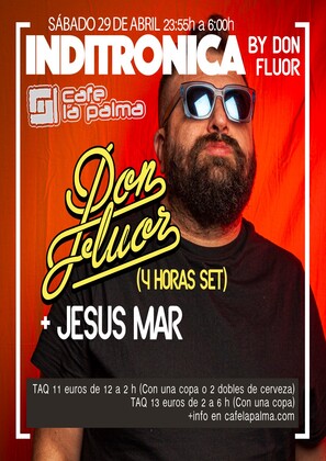 DON FLUOR –alter ego musical de Rafa Lopez– es un Dj y productor albaceteño afincado en #Murcia que redefine el concepto #FIESTA proponiendo un discurso divertido desde el #house pero llevando sus shows por #indie, #indietrónica y #techno. Además, forma parte del staff de programación de 21 years of history, and Café la Palma is one of the most dynamic music venues in Madrid, and a pioneer in the introduction of «first drink» concept. We are placed in Madrid’s downtown. Our philosophy is escape from any conventionalism, getting from Café la Palma a multi-dimensional place, a labyrinth full of amazing novelties. Café la Palma is for sure the best place for leisure and culture, to find all kind of surprises, in a constant process of change, adaptable to your mood. Only decide where to sit, and have some joy. You can sit and have a chat with your friends, with some cups of delicious coffee; enjoy evocative oriental beats an irresistible cocktails in the arab tent; or join into a concert with amazing Madrid’s underground bands, or well known pop musicians; or going mad with our dance floor, with best Madrid DJs. We provide a complete variety of services of entertaiment. And our staff is kind, efficient and professional. The dance floor, and concerts hall is for sure the core of Café la Palma. We proudly feel like a meeting point for curious, dynamic people. Like our customers, we are sophisticated and opened. All «tribes», all generations are welcome to feed and feel the magic of Café la Palma. About live music, our sound is one of the best in Madrid. In our scenario have played Dominique A, Jay Jay Johanson, Amaral, Addictive TV, Kenny Larkin, Ursula 1000, Programme, Mani (Primal Scream), The Gift, Amparanoia, Mala Rodríguez, Cycle, Josele Santiago, The Exception, The Coronas, Sex Museum, Vetusta Morla, Chojín Laziness Izal, Alamedadosoulna, La Bien Querida o Lichis and Goat Mechanics. desde este verano de 2019, año en el que comenzó a comenzó a tener residencia fija en nuestras sesiones.