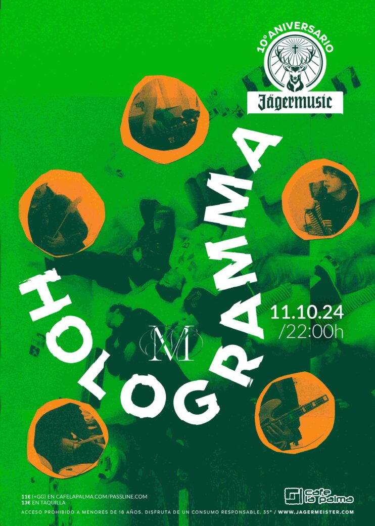 HOLOGRAMMA es una banda originada en Barcelona. En 2020 presentaron su primer tema, “Cristales”, que en menos de un año superó el medio millón de escuchas en Spotify y los colocó en el radar de grupos indie españoles reafirmando ésta posición con un directo que daría el empuje en su camino como banda. Alejados de cualquier etiqueta absoluta, su sonido está lleno de nostalgia y de intimidad y sus letras recogen temas como el amor, el miedo, el paso del tiempo, la vida y la muerte.