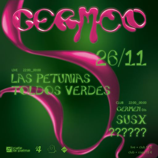La clausura de este segundo ciclo de GERMEN vendrá de la mano de Las Petunias y del esperado debut de Toldos Verdes, dos bandas madrileñas de indie-punk que pondrán a saltar a toda la sala con su energía sobre el escenario. El colofón final de este Germen será sorpresa y contará con Susx como dj invitado ¡No te lo pierdas!