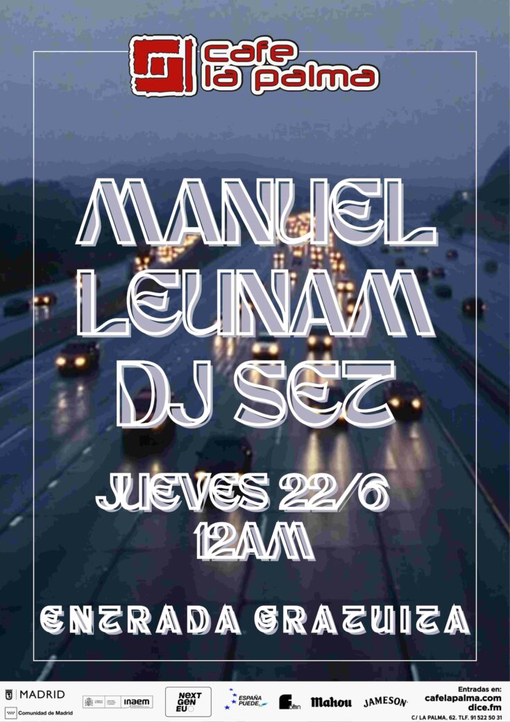 Manuel Leunam es un músico y dj granadino afincado en Madrid. A Manuel le gusta sumergirse en las profundidades musicales para sacar a flote una variada y agitada selección de temazos que viajan por géneros tan diversos como el City Pop, Disco Soul, Indie, Italodisco y muchos más. Sin duda os hará bailar y descubrir algunas joyitas.