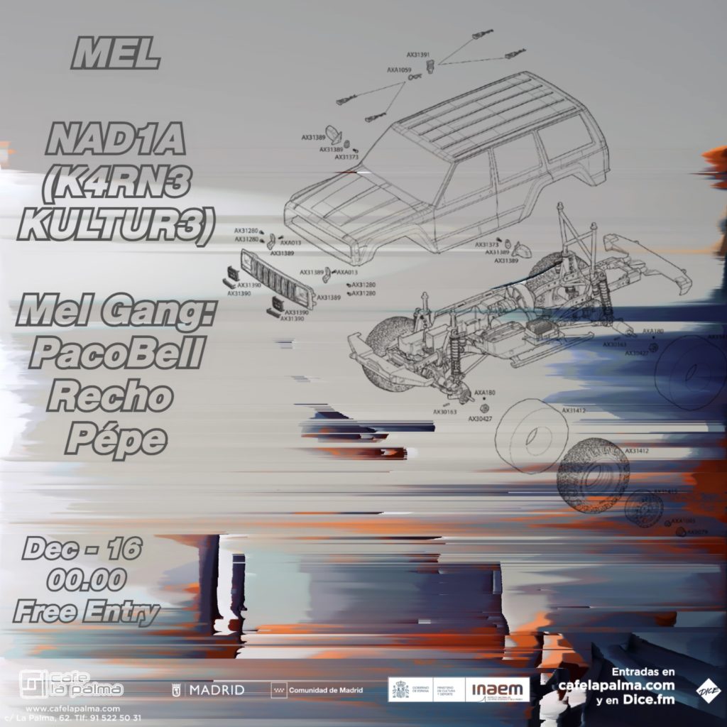 El colectivo revelación valenciano M. E. L. aka Most Epic Lads viene en formato tresquintos (3/5) con Recho, Pépe y PacoBell, con unos USBs más enfurecidos que un valenciano probando una paella en el raval de Barcelona. No esperes una noche lineal jejej la movida va de que sonará house, electro, breaks, dubstep, techno, reggaeton o lo que nos vaya pintando para haceros sudar todas las copas y llegar el viernes fresquis al curro. Como invitada invitadísima tendremos a NAD1A en cabina. Integrante del colectivo madrileño K4RN3 KULTUR3 y una de nuestras Djs favoritas residente en Madrid, poseedorea del poder de la ultravisión, quasi nada.