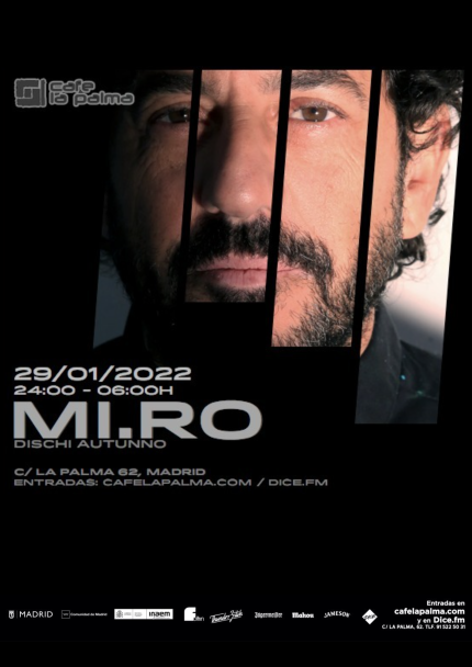 MI.RO es el proyecto paralelo del veterano DJ y productor Fernando Gullón, enfant terrible de la escena española. Durante toda su carrera ha publicado trabajos en sellos discográficos nacionales e internacionales como Rotten City, Spa In Disco, Boîte, Espacio Cielo, Nein, La Volta Ros, Critical Mondays o Paradise Children. En 2021 publicó dos EP’s junto Yula Kasp en Dischi Autunno (subsello de Correspondant) con remixes de Nadia D’Alo (Hivern Discs), Mogambo (Dischi Autunno) y Curses, además de nuevos Eps y su álbum de debut.