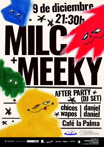 Meeky es la amistad entre Adri y Dani en forma de banda. Ambos son del norte, pero se conocieron en la escena DIY de Madrid, donde llevan años montando conciertos, editando cintas y tocando en diferentes bandas (Confeti de Odio, No Fucks, Momento Manín). La banda empezó como una manera de aprender a tocar la guitarra y la batería, haciendo una mezcla de indie y emo que les llevó a sacar un 7″ en 2019, «Creatures, Rainbows & You» en donde mostraban más ganas que talento. Ahora, por fin, se encuentran grabando el que será su primero disco, donde se pasan al castellano y en el que incorporan más amigos a la banda, en un intento de aparentar ser una banda seria.
