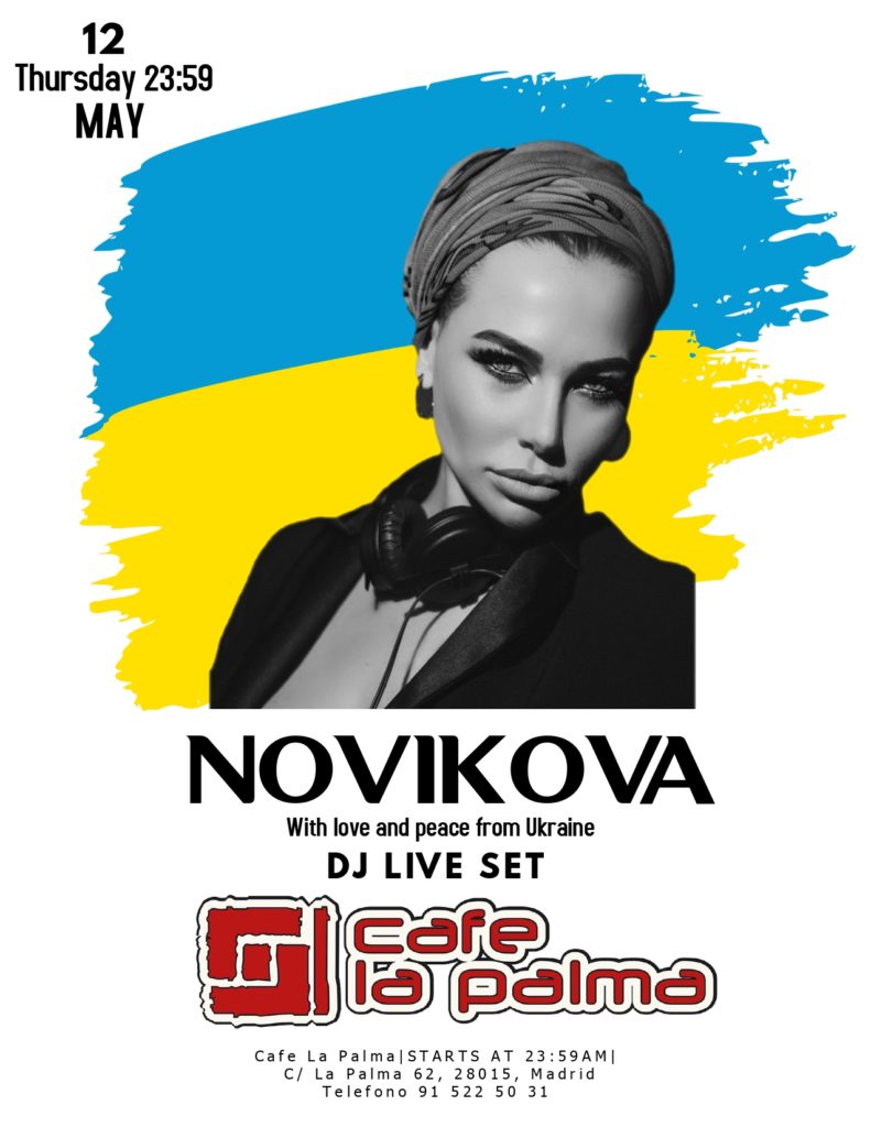 Desde 21 years of history, and Café la Palma is one of the most dynamic music venues in Madrid, and a pioneer in the introduction of «first drink» concept. We are placed in Madrid’s downtown. Our philosophy is escape from any conventionalism, getting from Café la Palma a multi-dimensional place, a labyrinth full of amazing novelties. Café la Palma is for sure the best place for leisure and culture, to find all kind of surprises, in a constant process of change, adaptable to your mood. Only decide where to sit, and have some joy. You can sit and have a chat with your friends, with some cups of delicious coffee; enjoy evocative oriental beats an irresistible cocktails in the arab tent; or join into a concert with amazing Madrid’s underground bands, or well known pop musicians; or going mad with our dance floor, with best Madrid DJs. We provide a complete variety of services of entertaiment. And our staff is kind, efficient and professional. The dance floor, and concerts hall is for sure the core of Café la Palma. We proudly feel like a meeting point for curious, dynamic people. Like our customers, we are sophisticated and opened. All «tribes», all generations are welcome to feed and feel the magic of Café la Palma. About live music, our sound is one of the best in Madrid. In our scenario have played Dominique A, Jay Jay Johanson, Amaral, Addictive TV, Kenny Larkin, Ursula 1000, Programme, Mani (Primal Scream), The Gift, Amparanoia, Mala Rodríguez, Cycle, Josele Santiago, The Exception, The Coronas, Sex Museum, Vetusta Morla, Chojín Laziness Izal, Alamedadosoulna, La Bien Querida o Lichis and Goat Mechanics. y todo Malasaña en general queremos dar una calurosa a Novikova, una DJ ucraniana que, a causa de la guerra, se ha visto obligada a abandonar su país de origen.