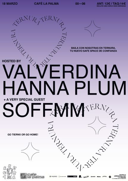 TERNURA es la nueva fiesta-colectivo que hostean Valverdina y Hanna Plum. Un espacio seguro donde bailar y pasárselo bien con la mejor selección musical: perreo, techno e hyperpop de vanguardia.