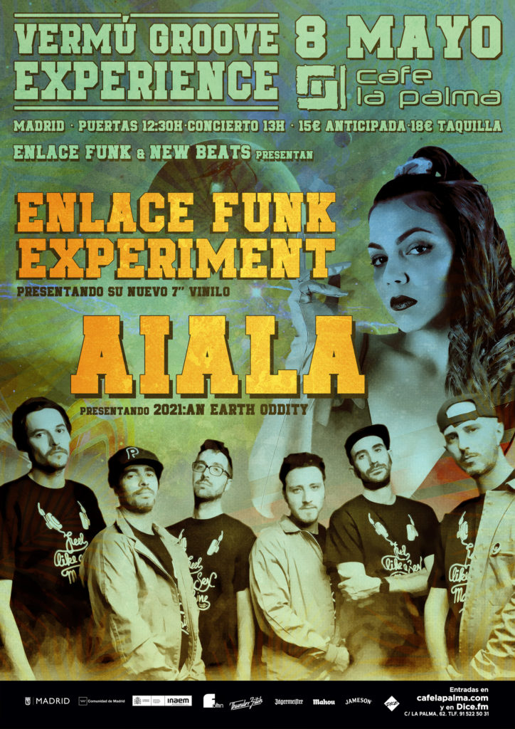 La revista Enlace Funk y el sello New Beats (Kasba Music) se unen para presentar una sesión doble, en forma de matinal, bajo el título de Vermú Groove Experience. Desde Barcelona nos visitará Aiala, joven promesa que ya es realidad gracias a sus dos espectaculares discos publicados, que ha sido invitada por los anfitriones, Enlace Funk Experiment, el proyecto musical creado por la revista Enlace Funk para descubrir los secretos del groove.