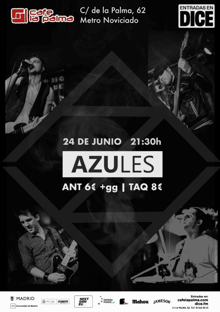 Azules se forma en 2010 al unirse Dani, Jorge, Jose y Diego. Retratos, paisajes, colores, luz… dos EPs, un disco, un particular viaje universal. Canciones que te agarran, no te sueltan, poco a poco te llevan a sitios en los que no has estado, en los que estarás.