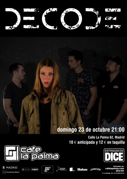 DECODE es una banda de rock formada por Enrique Calderón (batería), Luis Delgado (bajo), Alberto Blanco (guitarra principal) y Anuskka (voz y guitarra). Influenciados por bandas de todo tipo (desde Paramore hasta Royal Blood, pasando por Pearl Jam o Billy Talent) han conseguido elaborar un estilo único.