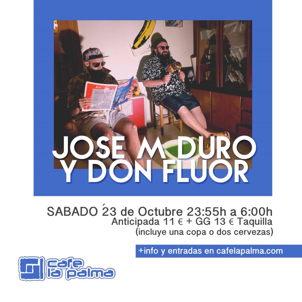 Jose M Duro es el director de Climax el programa más escuchado de la electrónica en España, productor con lanzamientos en sellos nacionales e internacionales y ha estado en los principales festivales patrios y Don Fluor es un dj que pasea entre el house y el indie con un discurso descarado y divertido. En CAFE LA PALMA llegan con un batido de clásicos y hits del house y el disco para que te la bailes bien bacano.