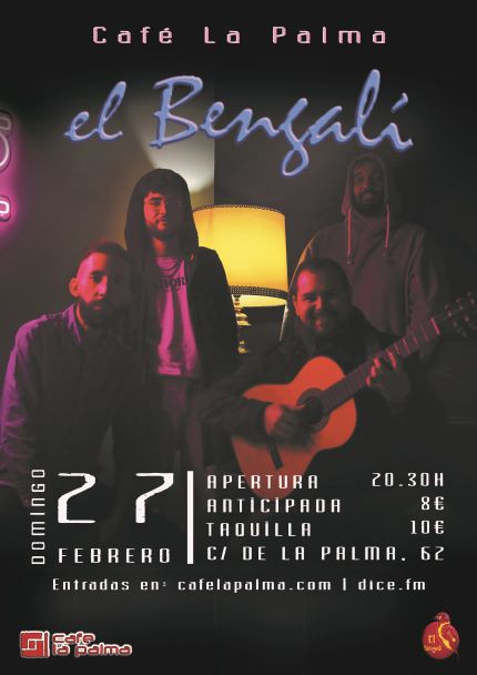 Después de finalizar 2021 con una gran acogida, llega el primer concierto de El Bengalí de este 2022. Un proyecto muy divertido con una mezcla de diferentes estilos que cada músico ha ido aportando según su procedencia y gustos, dando como resultado un grupo donde con la rumba de base se suman el blues, el country, la bossa nova o el funk.