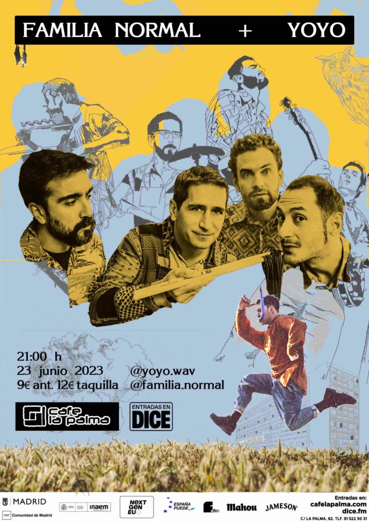 Familia Normal es una banda concebida por casualidad al calor de una noche aleatoria de jazz y electrónica en un antro de Manhattan y finalmente germinada en Madrid allá por 2018. Chema Laforet (guitarra y voz), Miguel de la Ossa (teclado), Goyanes (bajo) y Turco (batería) ponen cerebro en la música, corazón en los instrumentos y picardía en los directos. Un grupo cuya mezcla de rock psicodélico, funky y melodías canallas ha sido mencionado como la “versión psycho-punk de Golpes Bajos con un regusto beatleliano a lo Talking Heads”.