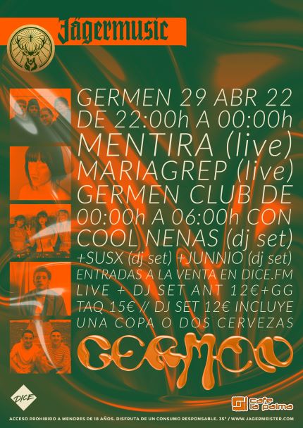 GERMEN cierra la persiana con dos de los artistas más destacados dentro del nuevo indie pop estatal: MENTIRA y MARIAGREP. MENTIRA presenta su nuevo EP que contiene sus últimos singles hasta la fecha y MARIAGREP estrena su nuevo single “Tirita” tras su éxito con “Marinero”.