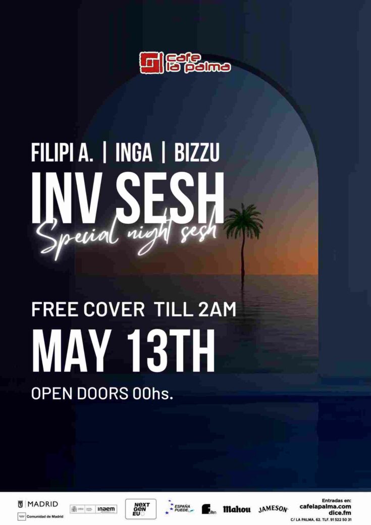 Vuelve Inv Sesh, una propuesta acostumbrada a combinar todo tipo de arte. En esta nueva edición como en las anteriores, busca darle un espacio a artistas de gran recorrido nacional e internacional como Filipi A., Inga y Bizzu para exponer su música al público de CAFE LA PALMA.