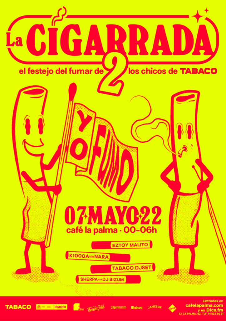 ¿Cuántas veces te has levantado diciendo: Dios, ¡qué ganas de fumarme doscientos cigarros! En TABACO te comprendemos y por eso volvemos a celebrar la Comunión de la Colilla, una noche dedicada única y exclusivamente a recaudar fondos para la AAFMT, la Asociación de Amigos de Fumar Más Tabaco. Ven a bailar con nosotros y sobre todo sal fuera del garito a fumar cada vez que te notes un poco alicaído. Las cerillas corren de nuestra cuenta.