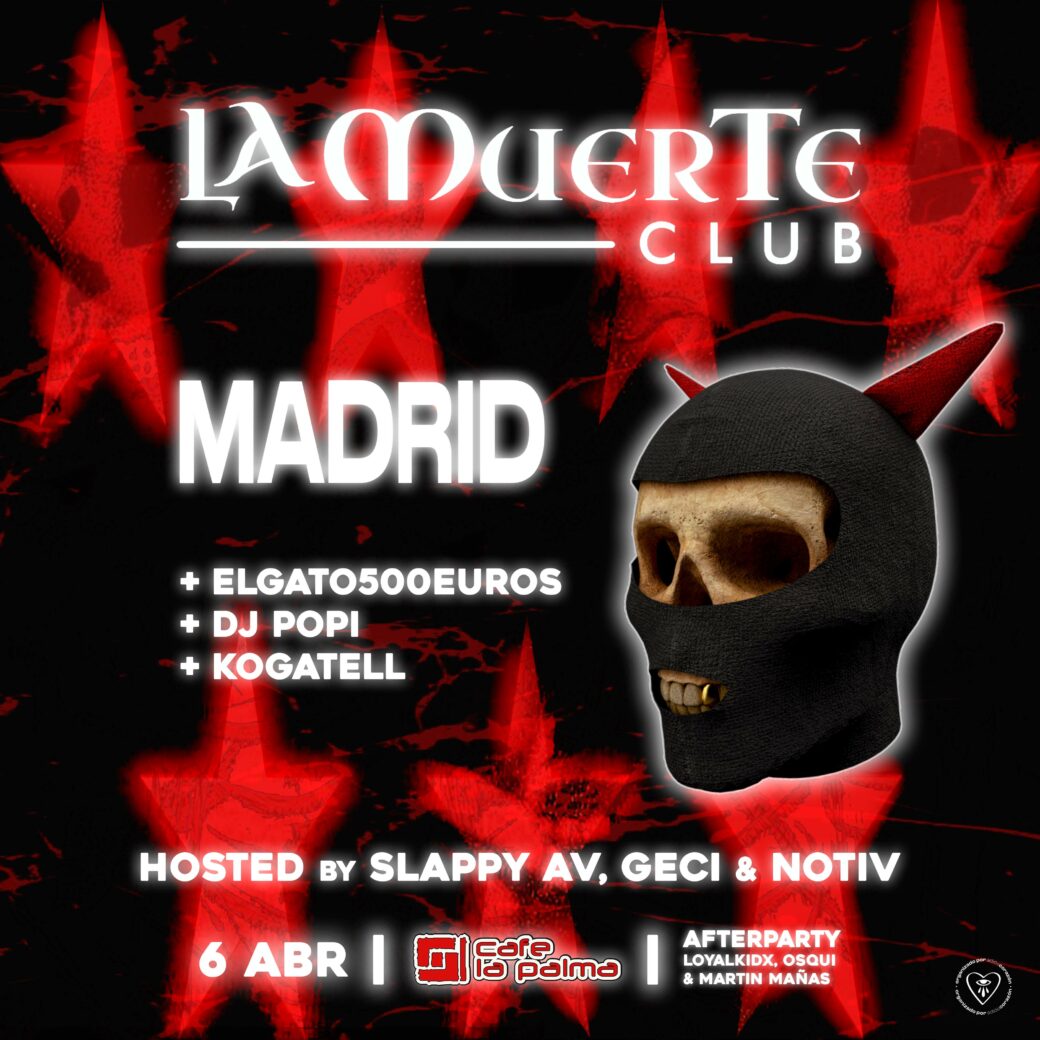 De la mano de Slappy Av, Geci Av y Notiv estrenamos LAMUERTE CLUB en Madrid para presentar un nuevo concepto de club en el que entran todos aquellos sonidos efervescentes dentro de la escena underground. Desde el hyperpop, jersey o RKT, LAMUERTE CLUB abre diferentes caminos en una noche en la que la variedad musical marcará una presencia en el club inigualable.