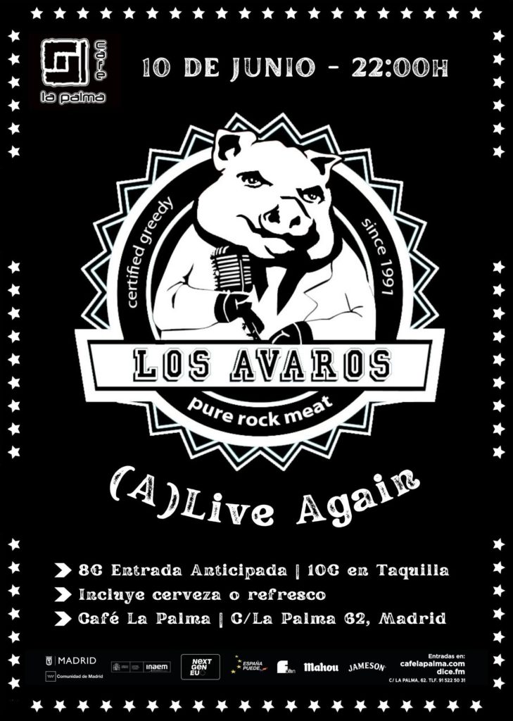 Haciendo un paréntesis en la grabación de su inminente disco, LOS AVAROS regresan a CAFE LA PALMA con un repertorio renovado, el mismo buen rollo de siempre y más energía que nunca. La última vez que LOS AVAROS se subieron a nuestro escenario tomaron impulso para ganar el concurso de bandas del Rock’n’Roll Maratón Madrid, que les llevó a hacer doblete en Liverpool, tocando en la maratón de la ciudad y en el mítico The Cavern.