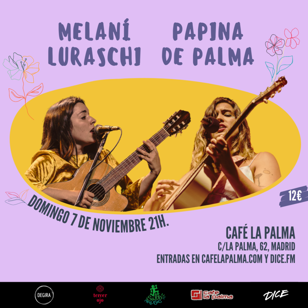 Las cancionistas uruguayas Melaní Luraschi y Papina de Palma regresan a Madrid con sus melodías frescas del sur, que entremezclan raíces del candombe y la guitarra criolla con melodías pop y la cadencia única del sonido rioplatense.
