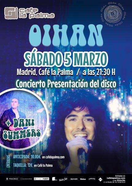 Con sonidos que recuerdan a Pereza, Hombres G o El Canto Del Loco, Oihan recupera esa frescura del rock de los 2000, pero lleno de brisas ochenteras, ritmos pop bailables y baladas que atraviesan el corazón.
