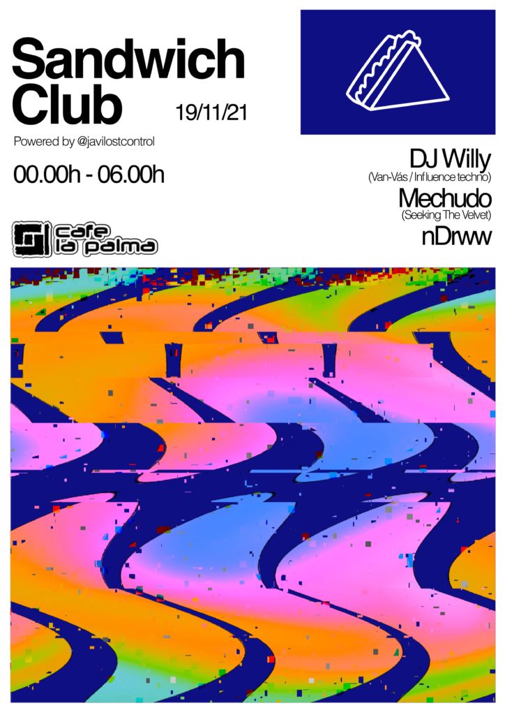 Sandwich Club es un evento mensual de música electrónica que se celebra en CAFE LA PALMA, creado por Mechudo y propulsado por JAVILOSTCONTROL.