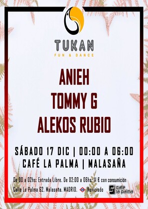 TUKAN son risas, familiaridad, frescura, alegría, novedades y recuerdos, son colores y sabores, dulce con un punto de picante: Fun & Dance con Anieh, Alekos Rubio y Tommy G en cabina.