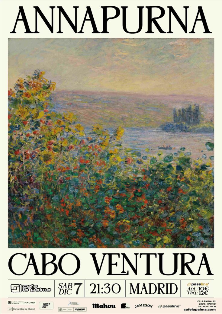 Estarán acompañados por CABO VENTURA, una banda madrileña de indie rock compuesta por Jorge (guitarra y coros), Fer (bajo), Alejo (voz y guitarra) y Marcos (batería y coros) que viene de grabar sus primeros temas en estudio. Proponen un estilo identificable con el panorama madrileño actual, con melodías muy características y fuertes guitarras. Presentarán los temas grabados durante estos últimos meses, canciones que saldrán a partir de enero y que ayudarán a poner un punto de inicio a la trayectoria de la banda.