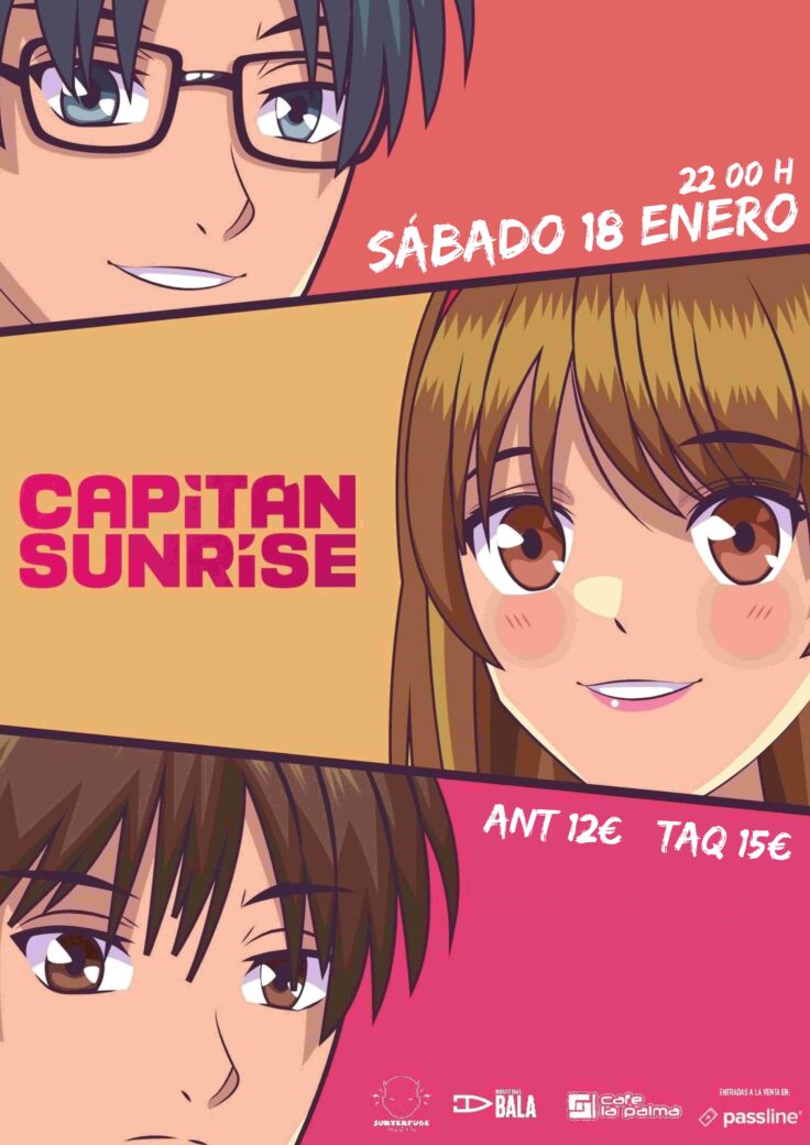 CAPITÁN SUNRISE es una banda de pop bailable, melódica y muy pegadiza, con estética colorista y nombre de superhéroe manga. Sus letras son costumbristas, originales, inteligentes, divertidas y con un gran toque de humor.