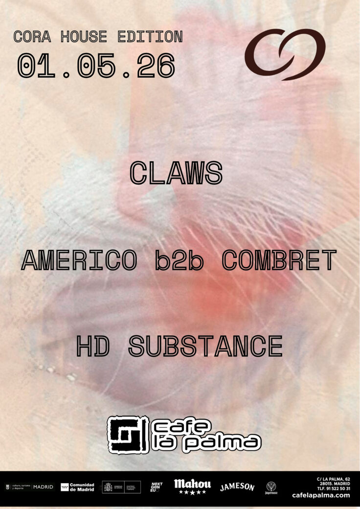La noche se abre hacia un nuevo paisaje sonoro con una sesión de House y Tech House a cargo de Claws con mezclas pulidas y estilo personal con una investigación exhaustiva en su selección musical. HD Substance, leyenda de la música electrónica nacional en constante evolución y Americo b2b Combret, sonido fresco, house de calidad que mantiene la pista en movimiento de principio a fin. Un tránsito natural desde la escucha atenta del directo hacia el movimiento en pista, manteniendo la coherencia musical y el cuidado por el sonido.