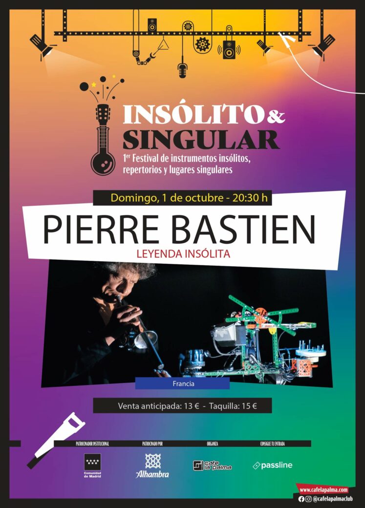 A los diez años de edad, PIERRE BASTIEN construyó una guitarra de dos cuerdas a partir de los elementos del juego educativo Le Petit Physicien. A los quince años elaboró su primera máquina con un metrónomo que golpeaba por un lado un platillo y por el otro lado una sartén. Unos años después empezó construyendo su propia orquesta de robotes hechos de mecano que tocan instrumentos del mundo y objetos usuales. Con este mecanium graba sus discos, actúa, hace exposiciones de arte sónoro y ha colaborado con destacados artistas como Pierrick Sorin, Pascal Comelade, Robert Wyatt, Issey Miyake o Roberto Oliván entre otros.