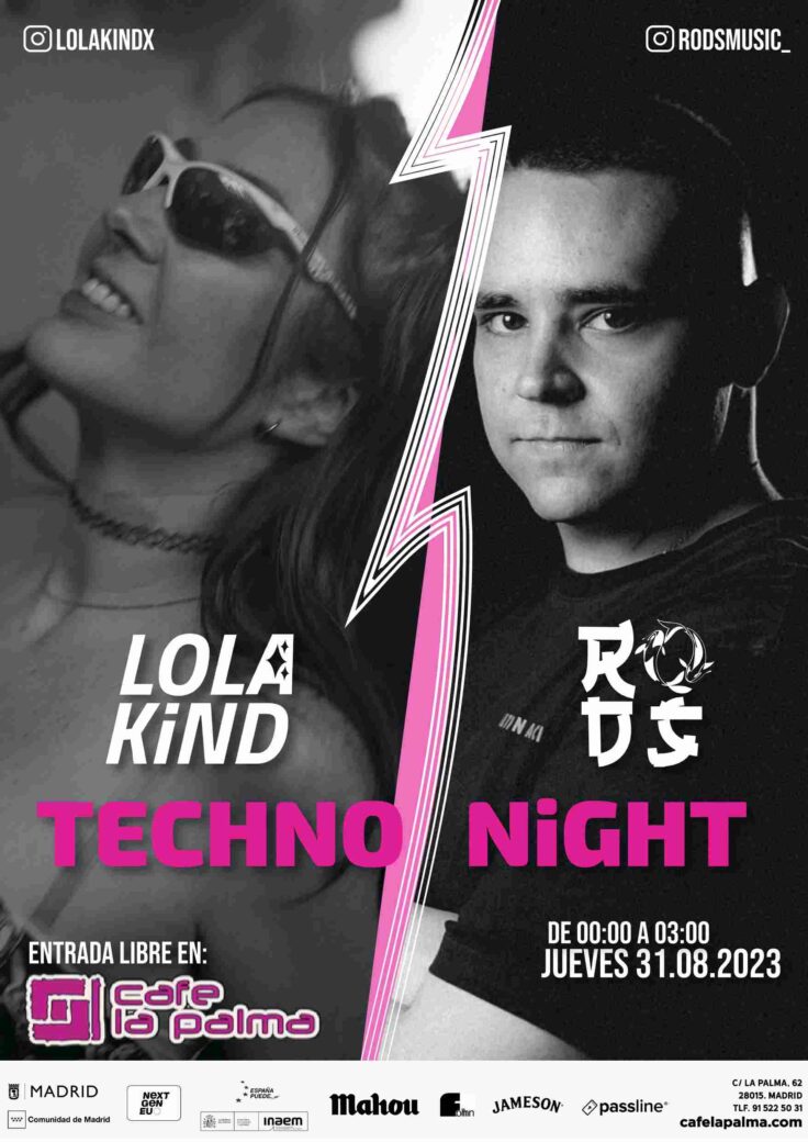 ✨ Si eres un amante del género y te gustan las buenas vibras, ¡tienes una cita obligatoria! LOLA KiND traerá los temas más frescos del momento desde la cuna del techno. Y ojo porque además, vendrá acompañada por RODS, una sensación del techno madrileño.