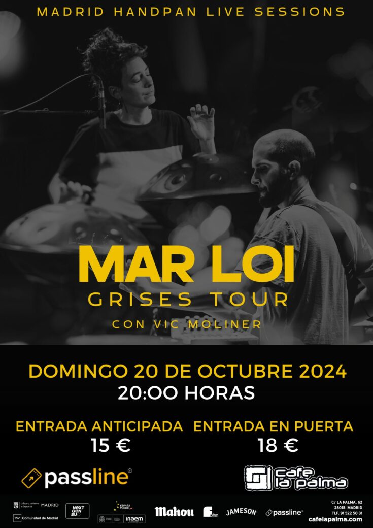 El directo de «Grises» es una propuesta innovadora de música instrumental y electrónica con un toque experimental que combina composiciones propias originalmente creadas con Handpans y paisajes sonoros por Mar Loi, con Vic Moliner al bajo, sintetizadores y percusión.