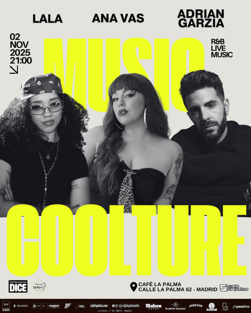El 2 de noviembre de 2025, Music Coolture vuelve a CAFE LA PALMA con su apuesta de música en vivo, una atmósfera íntima y vibraciones únicas para los amantes de R&B
