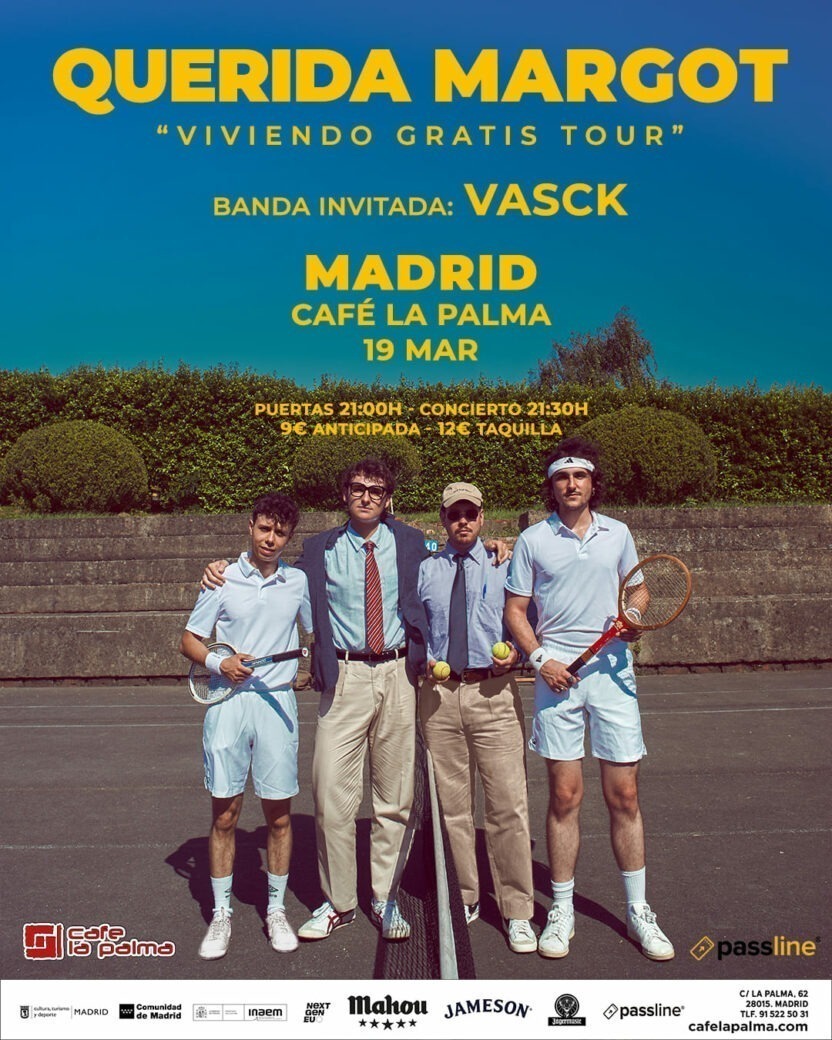 Formados en 2022 han construido su trayectoria sobre la energía de los escenarios. Más de un centenar de conciertos después, Querida Margot se ha ganado al público con una puesta en escena cuidada y un directo vibrante que convierte cada actuación en una experiencia de rock’n’roll auténtico.