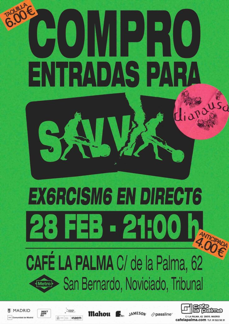 SAVVA es un grupo íbero cuya guía está basada en la máxima: “Moco y Gotelé”. Aparecidos en el año 2018, vuelven del exilio ofreciendo a su ganado sus últimos trabajos: la fuerza imparable “Whatsapp 2” y el objeto inamovible “Los Alegres Bandoleros”.