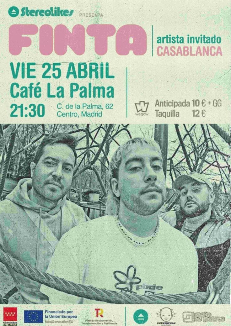 FINTA es un grupo formado por Pablo Díaz, Jorge Gallego García y Álvaro Bazó, que surge entre los bancos de los parques del barrio de El Pilar, zona noroeste de Madrid. Se definen como «nuevo pop», indiepop levemente salpicado de toques urbanos y apoyado por videojuegos retro y sonidos de los 90/2000’s para abordar de manera directa una de sus marcas de la casa: la nostalgia.
