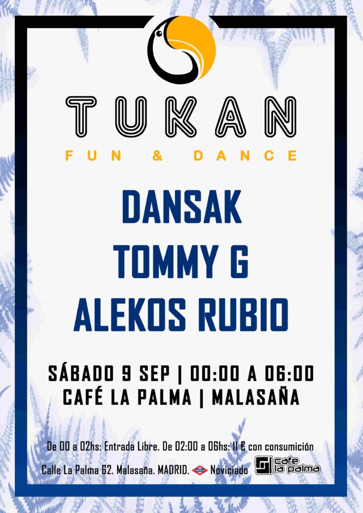 TUKAN son risas, familiaridad, frescura, alegría, novedades y recuerdos, son colores y sabores, dulce con un punto de picante. En esta sesión contaremos con DANSAK, nombre artístico de Daniel Muñoz, sumergido en la escena electrónica desde mediados de los ’90. Inspirado por los sonidos innovadores y futuristas que emergían en ese momento, se sintió atraído por los ritmos electrónicos y comenzó a experimentar con la mezcla y la producción de música en su adolescencia. Subgéneros como el techno, el trance y el house, han influenciado su estilo y sonido característico hasta el día de hoy. Dansak ha pinchado en clubs en Ibiza, Barcelona y Valencia, compartiendo cartel con algunos de los nombres más influyentes de la escena.